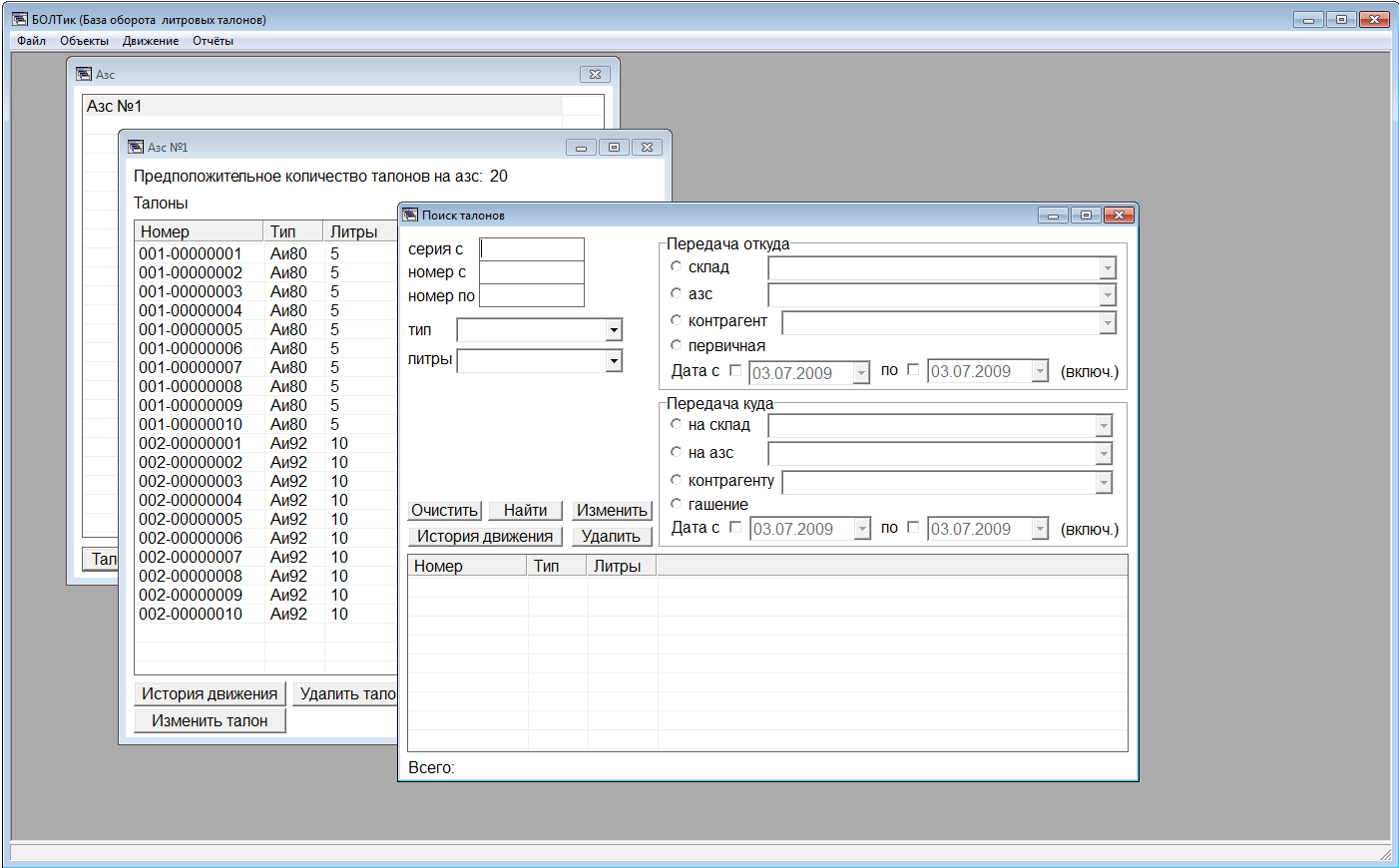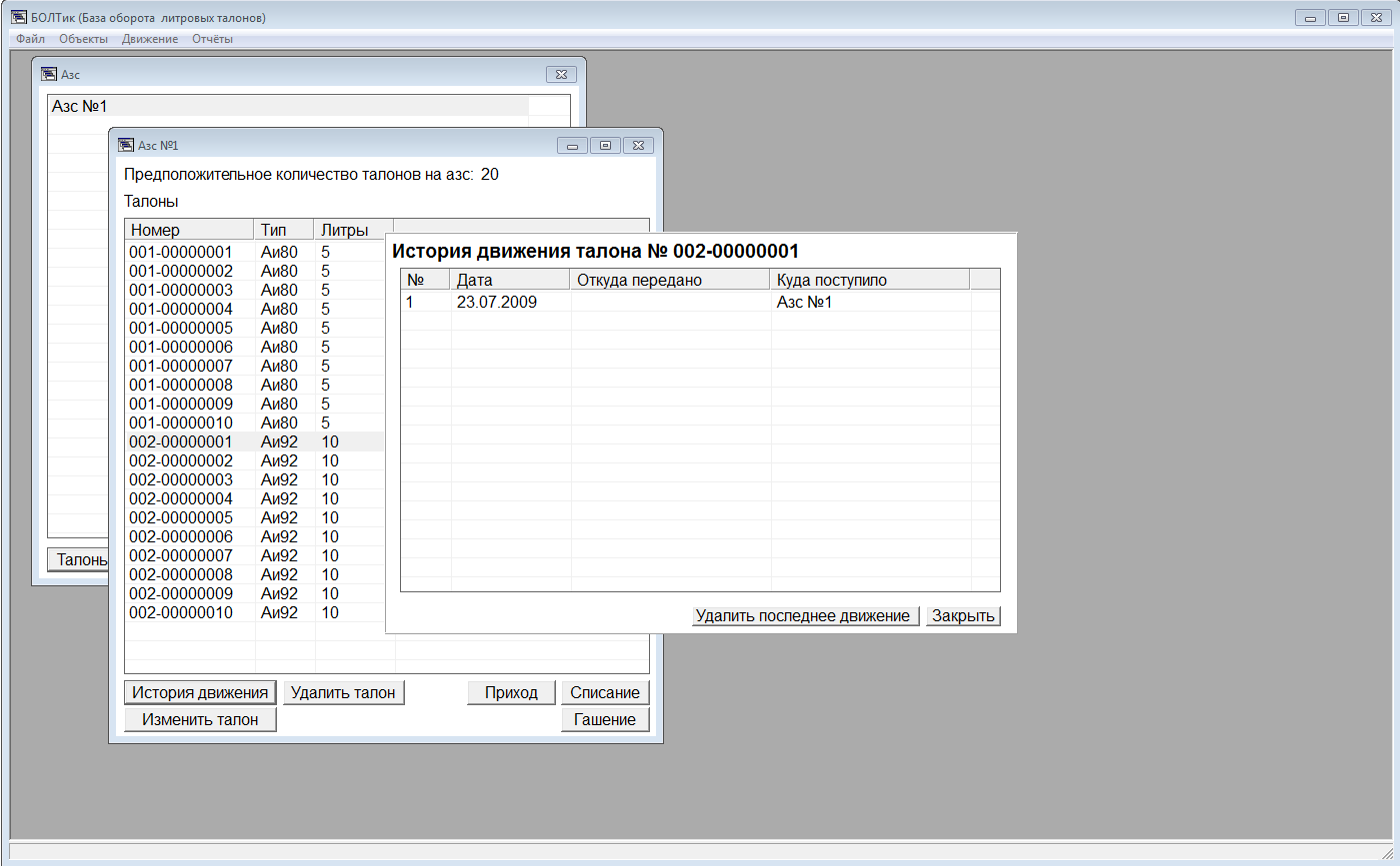 Программа учета оборота талонов на бензин и дизельное топливо